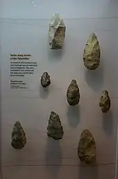 Human tools are the most prominent of all historic items in the area. The abundant hand axes are characteristic of the Acheulean period, made by hominins between about 600,000 and 900,000 years ago[7]along what was then the shore of a now dried-up lake. Fossils of various animals have also been found, including those of extinct species of hippo, elephant, zebra, giraffe, and baboon, likely to have been butchered with the aid of the hand axes.[1][3]
