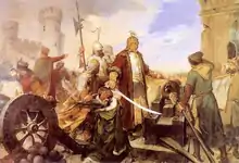 First mentions of Olsztyn come from the beginning of the 14th century. At that time, it was a settlement, founded by the castle. In 1448, King Casimir IV Jagiellon granted it Magdeburg rights town charter, together with a privilege to organize fairs, which spurred Olsztyn's development. It was a royal town of Poland, administratively located in the Kraków Voivodeship in the Lesser Poland Province of the Kingdom of Poland, near the border with Silesia. In 1587, the Royal Castle was successfully defended by 80 Poles against 4,000 Austrians during the War of the Polish Succession, however, the town was destroyed. Further destruction was brought by the Swedish invasion of Poland (1655-1660). Finally, the town completely burned in 1719, and Olsztyn, despite officially keeping its town charter, turned into a rural settlement. After the Second Partition of Poland, in 1793, Olsztyn was annexed by Prussia. In 1807 it was regained by Poles and included within the short-lived Polish Duchy of Warsaw, and after its dissolution in 1815, Olsztyn belonged to Russian-controlled Congress Poland. The Russians reduced it to the status of a village in 1870. It was restored to independent Poland in 1918, when the country regained independence.