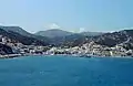 In antiquity in this place there was the Doric city Vrykous or Vrycous. Vrykous was one of the three ancient cities of Karpathos.[4] It was located near the village Avlona. Today a small part of the city and the walls are preserved as well as some ruins from graves and three old Christian churches.[5] The city of Vrykous was kept until the 7th or 8th century. Then the residents sought refuge in more mountainous areas on account of Saracen pirates. The refugees from Vrykous founded Olympos possibly in those years. Olympos was named after the mountain where it is built. The name of the village is feminine (Η Όλυμπος/I Olympos) contrary to the name of the mountain that is masculine (Ό Όλυμπος/O Olympos). The name Elympos (Έλυμπος) is used, mainly by local villagers.[6] The villagers of Olympos kept the local dialect and the traditional costume due to the isolation of this place from the rest of Karpathos. The traditional style of the village attracts many tourists nowadays.