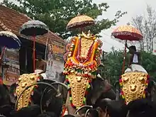 Temple festivals (Utsavam) and Church feasts (Palliperunal) are celebrated as village festivals. There are many historically important places of worship in Omalloor. The Rektha Kanda Swamy Temple is a grand temple situated in Omalloor, which dates back to the 8th century AD, is famous for its 10-day annual festival (utsavam). It is also a main pilgrim center for Sabarimala pilgrims. The St. Thomas Orthodox Valiya Palli (church) is another major place of worship for Christians. Manjanikkara Dayara is famous for its pilgrimage importance. Every year thousands of pilgrims come by foot to the tomb of Holy Patriarch Ignatius Elias III at Manjanikkara. St. Peter's Jacobite church, St. Stephen's Jacobite Church, St. Thomas Malankara Catholic Church, Puthenpeedika, St. Peter's Malankara Catholic Church, Cheekanal and St. Thomas Mar Thoma Church, Cheekanal are some other important places worship at Omalloor. Mathoor Kaavu Bhagavathi Temple, situated on the banks of Achenkovil river, is a famous Hindu temple. The River Achankovil marks the eastern border of the Omalloor Panchayat. The Thazhoor Bhagavati Temple, famous for the annual Padayani rituals during the Malayalam month of Kumbham is located on the banks of the River Achankovil.