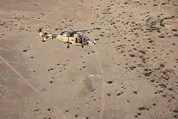 ![]() An Army Air Corps AW159 Wildcat helicopter above the training area in 2021. | |