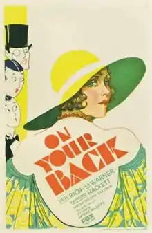 On Your Back is a 1930 American pre-Code drama film directed by Guthrie McClintic and written by Howard J. Green. The film stars Irene Rich, Raymond Hackett, H. B. Warner, Wheeler Oakman, Marion Shilling and Ilka Chase. The film was released on September 14, 1930, by Fox Film Corporation.[1][2][3] A trailer exists in the Library of Congress collection.[4]
