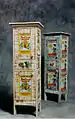 Two Wooden Cupboards by Ondrej Mares featuring metal paneling made from olive tins, cupboards constructed around 1996–1999.