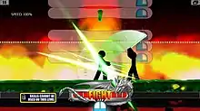 There are many different rounds in the story mode that each have different weapons, special requirements, and unique elements of gameplay. Some of these include the Light Sword or Nunchaku rounds, where the enemies are all one hit, but they increase in speed and number as time goes on. Boss battles consist of one enemy that has a health bar and requires a certain pattern of buttons to defeat. The pattern is displayed to the user by blue and red bars that represent in what order the player should press the left and right buttons, respectively. Missing a button press or pressing the incorrect mouse button will result in the boss hitting the player.