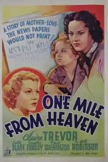 One Mile from Heaven is a 1937 American drama film directed by Allan Dwan and written by Lou Breslow and John Patrick. The film stars Claire Trevor, Sally Blane, Douglas Fowley, Fredi Washington, Joan Carroll and Ralf Harolde.[1][2][3] The film was released on August 18, 1937, by 20th Century Fox.