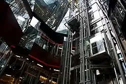 ![]() The central lifts of the shopping centre, pictured in 2011 | |