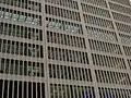The façade of the structure consists of piers clad in white marble that tie into the base and divide each side into four bays. The windows of the upper floors are only 12 inches wide and set into pre-cast panels made of concrete and marble chips that cover two floors. Although the windows extend nearly floor-to-ceiling, their narrowness avoids the feeling of acrophobia, a condition to which Yamasaki is said to have been subject.[8] The top and bottom of the window openings meet in a stylized arch, resulting in a delicate lattice appearance that Yamasaki re-used in his designs for the IBM Building in Seattle, the Oberlin Conservatory of Music, and the World Trade Center towers. The lattice is uninterrupted from the second through 28th floors, although on the mechanical floors above 26, the spaces in the lattice remain open instead of being glazed. These floors are enclosed by a recessed wall and the space between the outer and inner walls is illuminated after dark. From the building's opening through the early 1980s, the 26th floor was occupied by an upscale restaurant known as The Top of the Flame.[9]