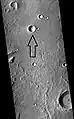 CTX camera (on Mars Reconnaissance Orbiter) image of Onon Crater and area around it. Arrow indicates Onon Crater.
