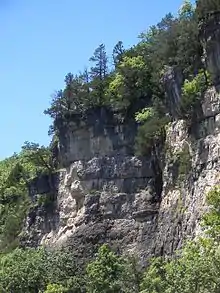 The Vilander Bluff Natural Area is a unit of the state park that is located at 38°05′56″N 91°08′20″W, 7 miles (11 km) northeast of the main body of the park. Its cliffs harbor unique natural communities, most notably a dry dolomite cliff community with over 200 ancient red cedar trees (Juniperus virginiana) that range in age from 200 to 500 years. The unit straddles the Meramec River, and opposite the bluffs is a rookery containing over 40 nests of the great blue heron.[8]