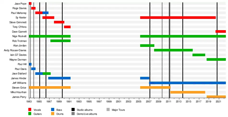 | Past members | Jase Pope Roge Davies Paul Mahoney Neil Turbin Sy Keeler Steve Grimmett Tony O'Hora Paul Hill Paul Davis Jase Stallard James Hinder Rob Trotman Alan Jordan Andy Rosser-Davies Michael Hourihan Leigh Chambers Steve Grice |