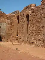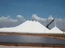 Although a large jetty was built at the original site of Onslow (Old Onslow), repeated cyclone damage and the silting up of the river caused increasing problems with the loading and unloading of visiting ships. The cargo was transferred by lighter from the ship in Ashburton Roads to the jetty, then by horse-tram from the jetty across 6 kilometres (3.7 mi) of marshland inland to the town. This led the state government in 1923 to develop a new town and jetty 18 kilometres (11 mi) north-east at Beadon Point.[6][7] The new townsite was gazetted on 10 January 1924, and the residents of Old Onslow moved across in 1925.[6][8] The new location for Onslow's jetty was better protected from storm damage with the townsite more conveniently located on the coast.[9]