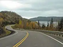 The Trans-Canada Highway Act was passed in 1950 and provided the impetus to construct Highway 17 around Lake Superior, which was carried out over the course of the decade.[11] This resulted in the planning of a new road to connect Highway 11 with Highway 17; it was decided that Highway 101 would be extended west as the new connector highway. In order to accommodate this future extension, the section of Highway 67 between Timmins and Hoyle was renumbered as Highway 101 in mid-1955.[12][13] On September 1, 1955, the route was extended west of Timmins to Warren Lake.[14] West of Warren Lake, Highway 616 and Highway 624 continued to the CNR stop in Foleyet; these would soon become part of Highway 101.[15] Highway 101 was opened to the Quebec border in December 1958 with the completion of the final 11.6 km (7.2 mi) gap. In addition, work began on December 18 to clear the route of the Foleyet to Chapleau Resource Road.[16] On April 1, 1960, Highway 616 and Highway 624 were renumbered as part of Highway 101,[17] making the highway 247.2 km (153.6 mi) long; it now connected Foleyet to the Quebec border.[18]