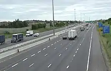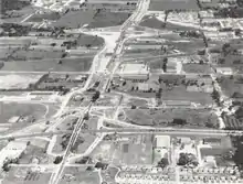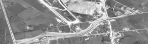 Construction of the Toronto Bypass began near Yonge Street in 1949 (along present-day Highway 401) and on the four-laning of Highway 27 in 1953.[11][12] The Highway 27 work involved the construction of two interchanges: a three-way stack at Highway 401 and a large cloverleaf at the QEW, the latter of which would become one of the worst bottlenecks in the province a decade after its completion, according to Minister of Transportation Charles MacNaughton.[13] By September 1956, it was possible to bypass Toronto entirely on the four lane divided highway composed of Highway 401 and Highway 27.[14][15] Highway 401 was extended to the west soon after,[16] but Highway 27 remained a two-lane highway north of it.[17]