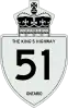 King's Highway 51, commonly referred to as Highway 51, was a provincially maintained highway in the Canadian province of Ontario that connected Highway 3 in Eatonville with Rondeau Provincial Park. An earlier designation existed south of Orangeville, connecting Highway 24 with Highway 10 in Caledon Village. This iteration was assumed in 1938, but later renumbered as Highway 24 In 1961. The more recent incarnation of the route number was assumed in 1970, but then decommissioned in 1997 and transferred to what is now the city of Chatham-Kent.