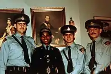 In the late 1940s, policing functions were reorganized in Ontario, with the OPP given responsibility for all law enforcement in the province outside areas covered by municipal police forces, together with overall authority for law enforcement on the King's Highways, enforcement of the provincial liquor laws, aiding the local police, and maintaining a criminal investigation branch.[14] In March 1969, a meeting took place at the Ontario Securities Commission to incorporate a separate but included group of the Ontario Provincial Police Association.[15] Women joined the uniformed ranks in 1974.