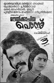Oothikachiya Ponnu (lit. 'Blown-seethed gold') is 1981 Indian Malayalam-language film directed by P. K. Joseph and written by V. K. Pavithran. The film reunited Mohanlal, Shanker and Poornima Jayaram after Manjil Virinja Pookkal (1980); it also features Mammootty.[1][2]