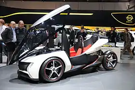 The Opel RAK e is an electric two seat city concept car which was produced by the German car manufacturer Opel. The RAK e premiered at the 64th Frankfurt Motor Show in September 2011.[1] The name RAK e recalls the name of the rocket powered RAK 2 of 1928, which included one canopy door.[2] It was developed and designed in conjunction with KISKA whom also designed the KTM X-Bow.[3][4]