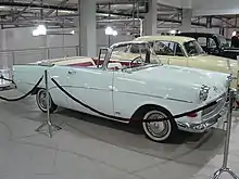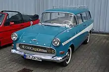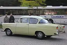 The Opel Rekord P1 (branded for its first two years as the Opel Olympia Rekord P) was an executive car introduced in August 1957, in time for the Frankfurt Motor Show, by Opel as a replacement for the previous year's Opel Olympia Rekord. It was larger than its predecessor and featured an eye-catching US-style wrap-around windscreen and rear window, reminiscent of its General Motors Luton-built cousin, the Vauxhall Victor F, which had appeared in England a few months earlier.