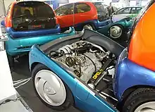 The Opel Twin was one such prototype built by Opel during 1991, which was an electric car with an exchangeable drive unit including the rear wheels. For an electric drive the batteries and motors could be replaced by an internal combustion engine including fuel tank, gearbox and an exhaust system.
