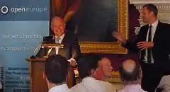 Open Europe holds regular seminars and discussions on Brexit and EU reform. Speakers at Open Europe events have included William Hague,[16] Vincent Cable,[17] Gisela Stuart,[17] Dominic Raab,[18] John Bruton,[19] Norman Lamont,[20] James Brokenshire,[21] Elmar Brok,[20] Nick Boles,[22] and Malcolm Rifkind.[19]