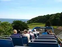 The six old buses rebuilt to open top form in 1955 were 21-year-old AEC Regent Is with bodies by Short Brothers.[15] These were replaced by nine Leyland Atlanteans with convertible Weymann bodies in 1961. These were all given the names of historic sailors and known as "Sea Dogs".[6][16] In 1976 two AEC Regent Vs with Willowbrook bodies had their roofs removed and were added to the open top fleet.[17]