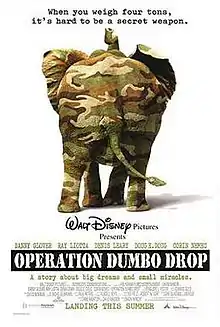 Operation Dumbo Drop is a 1995 American action comedy-drama war film directed by Simon Wincer. The storyline was conceived from a screenplay written by Gene Quintano and Jim Kouf based on a true story by United States Army major Jim Morris. The film stars Danny Glover and Ray Liotta as Green Berets during the Vietnam War in 1968, who attempt to transport an elephant through jungle terrain to a local South Vietnamese village which in turn helps American forces monitor Viet Cong activity. The film deals broadly with themes of war, politics and animal welfare.