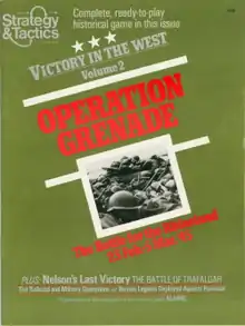 In 1978, SPI published Operation Typhoon, a board wargame that used a rules system based on 1976's Panzergruppe Guderian. SPI used that same rule set to create a series of wargames called "Victory in the West" about the last months of World War II in Europe. The first of these was Patton's 3rd Army, and the second was Operation Grenade, a pull-out game published in Strategy & Tactics #84 (January-February 1980) that was designed by Joseph M. Balkoski, with graphic design by Redmond A. Simonsen.[3]