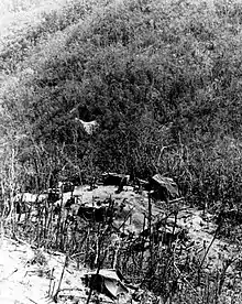 On the afternoon of 24 December, Company L, 3/5 Marines found a group of 9 PAVN/VC outside a cave 2.5 kilometres (1.6 mi) southwest of Hill 381, the Marines fired on the group killing 4 while the remainder fled. Companies K and L searched the caves and discovered a major PAVN/VC command post including 3 radios, 3 generators, spares and other equipment which were believed to be part of the elusive Front 4 Headquarters.[1]: 116