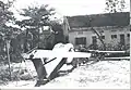 Wreckage of HH-3E looking toward west compound wall, with the river beyond.
