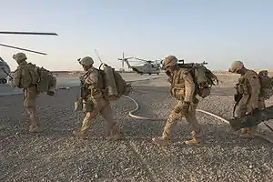 Operation Strike of the Sword or Operation Khanjar was a US-led offensive in Helmand province in southern Afghanistan. About 4,000 Marines from the 2nd Marine Expeditionary Brigade as well as 650 Afghan troops were involved, supported by NATO planes. The operation began when units moved into the Helmand River valley in the early hours of July 2, 2009. This operation was the largest Marine offensive since the Battle of Fallujah in 2004.[7] The operation was also the biggest offensive airlift by the Marines since the Vietnam War.[8]