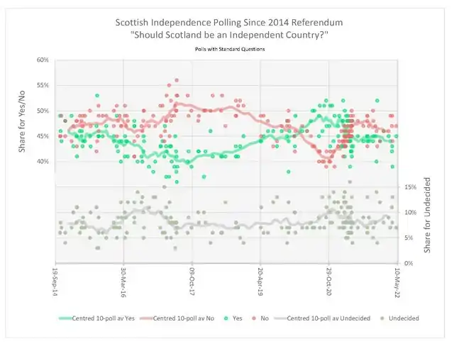 Since the referendum in September 2014, opinion polls have asked how people would vote in a hypothetical second referendum. These polls have been carried out since six weeks after the referendum.[12]