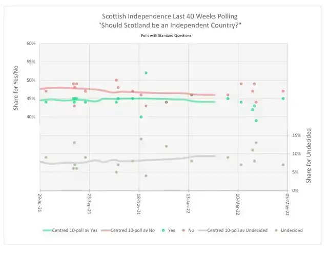 | 15–22 Dec 2021 | Opinium/Daily Record | 1,328 | 44% | 44% | 12% | Tied | [lower-alpha 3] |