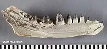 Opisthodontosaurus is an extinct genus of captorhinid reptile from the Early Permian of Oklahoma. The type species Opisthodontosaurus carrolli was named in 2015 on the basis of several articulated skeletons from the Dolese Brothers Limestone Quarry near Richards Spur. Before the description of these skeletons, the jaws and teeth of Opisthodontosaurus carrolli were thought to belong to a species of lepospondyl amphibian called Euryodus primus. Although captorhinid reptiles and lepospondyl amphibians are distantly related, the two species show a remarkable degree of evolutionary convergence in their dental anatomy. Both were likely durophagous, eating hard-shelled invertebrates.[1]