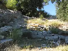 The Oppidum de Roque de Viou is on a hilltop overlooking the valley called the Vaunage, above the village of Nages-et-Solorgues, in Gard, between Nîmes et Sommières, in Occitanie, France. It is in the commune of Saint-Dionizy and is one of six iron-age oppida in the Vaunage; about 200m from the Oppidum de Nages or Oppidum des Castels. It was occupied in three periods between 700 BCE and 600 BCE and between 350 BCE and 300 BCE and around 50 BCE. It has been listed since 1980 as a monument historique by the French Ministry of Culture.[1]