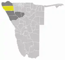 Former Opuwo Constituency (yellow) in the Kunene Region (dark grey)