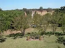 The other driveway runs south–north off former Cobbitty Road (now Oran Park Drive) to the homestead. This was lined in part in the mid-late 20th century with a mixture of eucalypt species.[2] Existing eucalypts (mature in 1947) west of this western, newer driveway.[1]