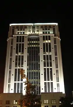 The Orange County Courthouse, located in Orlando, Florida, United States, comprises the Ninth Judicial Circuit Court of Florida and its associated offices, including Orange County's county court. The courthouse complex includes a 23-level courthouse tower, two five-story office buildings for the State Attorney and Public Defender, and a 1,500 car parking facility."[4] It is connected to other downtown points by the free Lymmo bus.