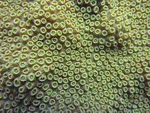 Orbicella annularis, commonly known as the boulder star coral, is a species of coral that lives in the western Atlantic Ocean and is the most thoroughly studied and most abundant species of reef-building coral in the Caribbean to date.[2] It also has a comprehensive fossil record within the Caribbean.[3][4] This species complex has long been considered a generalist that exists at depths between 0 and 80 meters[5] that grew into varying colony shapes (heads, columns, plates) in response to differing light conditions.[6] Only recently with the help of molecular techniques has O. annularis been shown to be a complex of at least three separate species.[7][8][9] Those species are divided into O. annularis, O. faveolata, and O. franksi. This coral was originally described as Montastraea annularis.
