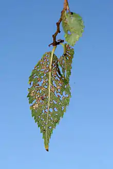 | Orchestes alni Shothole symptoms produced by adult feeding on Siberian elm | |