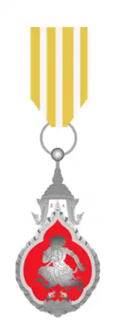 The Order of Civic Merit of the Kingdom of Laos (Lao: ອິສະຮິຍາພອນພົນລະເມືອງດິແຫ່ງຊາດ Itsariyaphon Phonlamuang Di Haeng Sat) was established on November 20, 1950 under Royal Ordinance No. 186[1] by H.M. Sisavang Phoulivong, The King of Laos. It is an Order of Civic Merit for civil officials and military officers. It was awarded for meritorious and courageous service to the State in three classes (1. Commander, 2. Officer, and 3. Knight).[2] Until 1975 the approval authority was the Prime Minister[3] of the Royal Lao Government. The current approval authority is H.E. Professor Maha Khamphoui Sisavatdy,[4] Prime Minister of the Royal Lao Government in Exile as an elected successor to the Office of the Prime Minister of the Royal Lao Government.