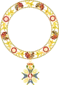 The Grand Cross class was carried on a red and yellow sash, worn from the left shoulder and worn with the Grand Cross breast star. On special occasions the badge of the order could also be worn from the collar of the order. The collar was a special class of the Grand Cross and it is not clear if everyone awarded the Grand Cross also received the collar.