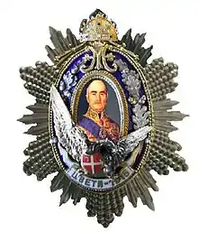 The Order of Miloš the Great (Serbian: Орден Милоша Великог), was an Order of the Kingdom of Serbia. Founded in 1898 by King Alexander I of Serbia, the order was named in honor of Miloš Obrenović, the leader of the Second Serbian Uprising, and founder of the House of Obrenović. The order was suppressed in 1903 by King Peter I of Serbia, a member of the competing House of Karađorđević.[1]