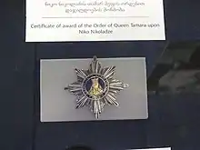 The Order of Queen Tamara was a Georgian military decoration granted to members of the Georgian Legion and of the German Caucasus Expedition who fought in Georgia after 4 November 1918.[1][2]