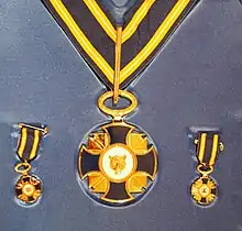 The Insignia of the Order comprised a Badge, a Star, a Sash, a Riband and a Miniature.[2][3]