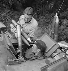 The Ordnance QF 75 mm, abbreviated to OQF 75 mm, was a British tank gun of the Second World War. It was obtained by boring out the Ordnance QF 6-pounder ("6 pdr") 57 mm anti-tank gun to 75 mm, to give better performance against infantry targets in a similar fashion to the 75 mm M3 gun fitted to the American Sherman tank. The QF came from "quick-firing", referring to the use of ammunition where the shell has a fixed cartridge. The gun was also sometimes known as ROQF from Royal Ordnance (the manufacturer) Quick-Firing.