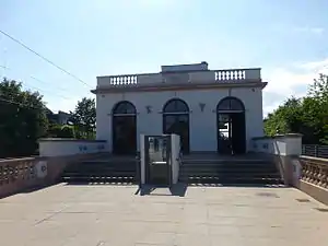 The main station building was designed by the Danish architect K.T. Seest in Neoclassical style. The station was listed in 1992.[1] The station was renovated by Gottlieb Paludan Architects in 2014.