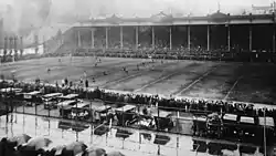 Unlike the wide-open Athletic Field, Kincaid Field was eventually fully fenced, allowing something resembling controlled access at a campus site for the first time. An alumni fundraising campaign was organized, and $1000 was spent to construct grandstands at Kincaid.[8]