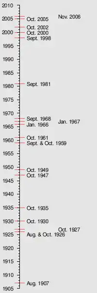 The most recent closure took place on November 7, 2006, involving a section of the highway from milepost 57 to milepost 80. As in the past, the closure was caused by overflow of the White River and the build-up of debris in the White River Canyon which subsequently flows down and overwhelms the highway.[8] This washout, the worst in memory, cut off access to Mount Hood Meadows in both directions, moved the White River course north and east to the bed of Green Apple Creek, and buried—sometimes 20–30 feet deep—two recreational parking lots, miles of cross-country skiing and hiking trails, and several small Forest Service roads.[7]