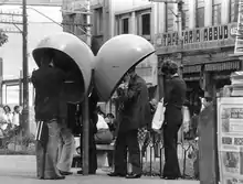 Orelhão (Big Ear; plural: Orelhões), officially Telefone de Uso Público (Public Use Telephone)[1] is the name given to the protector for public telephones designed by Chinese Brazilian architect and designer Chu Ming Silveira. It was created on April 4, 1972 and it was initially used in the cities of Rio de Janeiro and São Paulo.[2] Today, they are present everywhere in Brazil, as well as in other Latin American countries such as Peru, Colombia and Paraguay, in African countries like Angola and Mozambique, in China, and in other parts of the world.