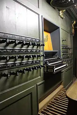 In 1904, the pedal action was pneumatized by Jan Doornbos. In 1912, the eight original wedge bellows were replaced by magazine bellows.[7]